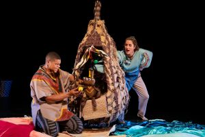 “…Een aanstekelijke voorstelling waarin tekst, muziek, poppenspel en vormgeving naadloos in elkaar passen.” – Theaterkrant, augustus 2023